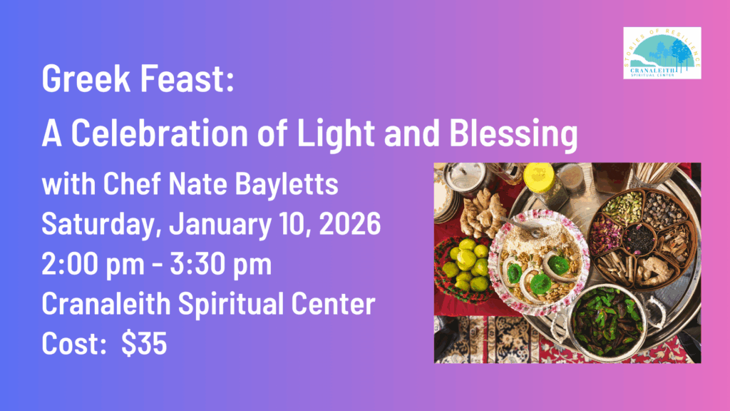 Gather with Cranaleith’s own Chef Nate Baylettes for an afternoon Greek feast that brings together rich flavors, deep symbolism, and the joyful spirit of Theophany—one of the great feasts of the Christian East. As we remember Christ’s revelation at the River Jordan, we also embrace the invitation this new year offers: a fresh beginning, spiritual renewal, and the grace to walk an illuminated path.