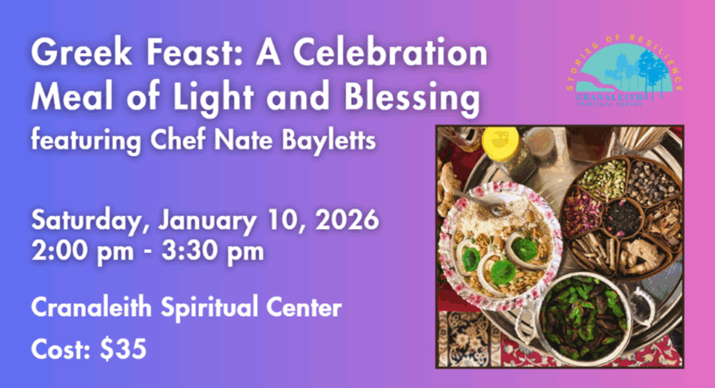 Cranaleith invites you to gather with our own Chef Nate Baylettes for an afternoon Greek feast that brings together rich flavors, deep symbolism, and the joyful spirit of Theophany—one of the great feasts of the Christian East. As we remember Christ’s revelation at the River Jordan, we also embrace the invitation this new year offers: a fresh beginning, spiritual renewal, and the grace to walk an illuminated path.
