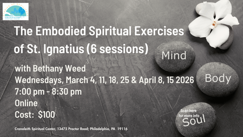 The Embodied Spiritual Exercises is a six week virtual series that uses an embodiment perspective to deepen our understanding of the Spiritual Exercises of Saint Ignatius. Although Ignatian spirituality encourages us to use our senses in prayer, much of the work on the exercises to date prioritizes the intellect and imagination over other sensory experiences. This series will deepen our engagement with his meditations by incorporating somatic elements into them.